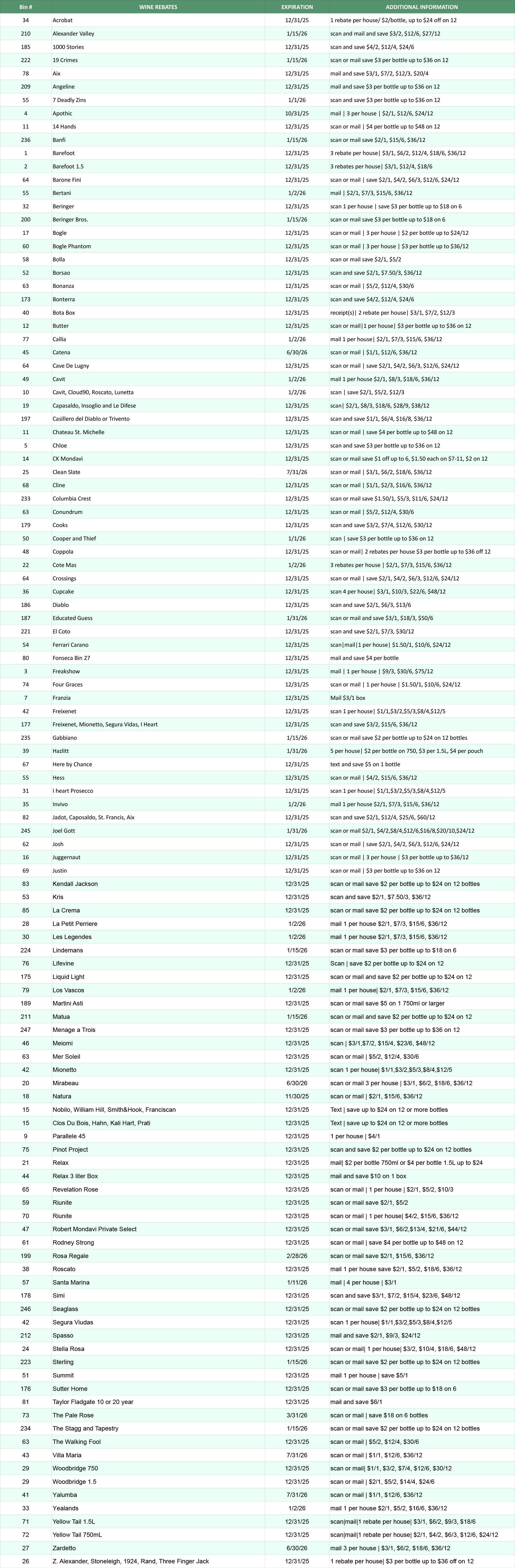 Lisaโs Liquor Barn now offers online access to wine and liquor mail-in rebates. If you see the scissor icon on one of our products online, that means you can choose to have the Lisa's staff include a mail-in rebate in your shipped wine order, or available in your box for curbside and in-store pickup. As long as you're planning to redeem these mail-in rebates from a New York address, you can look through this section and get a mail-in rebate with your order. Look through and choose the rebate that's right for you!